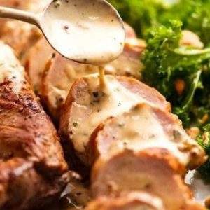 Un plato que fusiona lo mejor de la cocina española y francesa, con solomillo de cerdo ibérico a la plancha, bañado en una salsa cremosa de queso azul francés y servido con manzana caramelizada al horno.